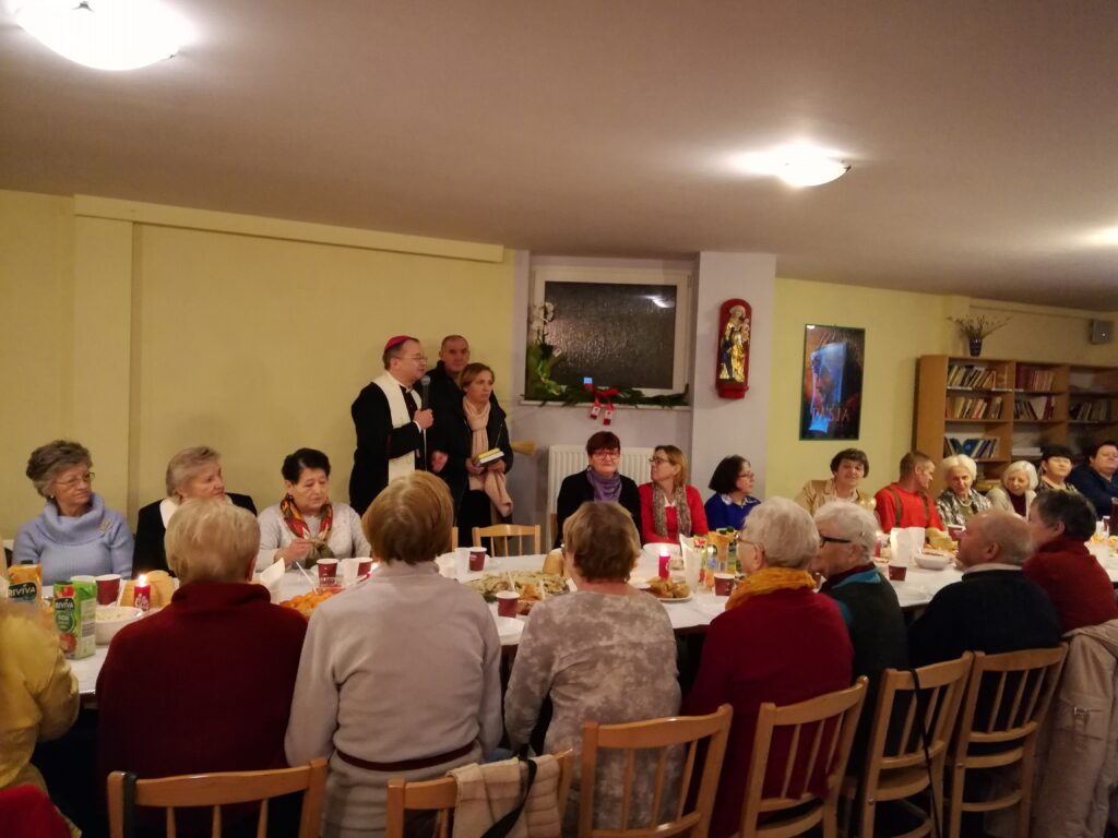 Biskup Tadeusz Lityński rozpoczął spotkanie życzeniami, a następnie podzielono się opłatkiem. Były też kolędy: