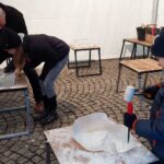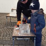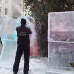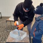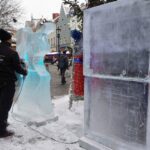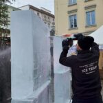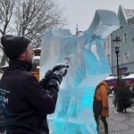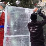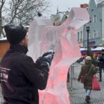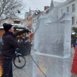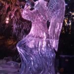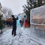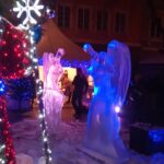 Dwa anioły grające na trąbach pojawiły się na zielonogórskim Jarmarku Bożonarodzeniowym. Wszystko to w ramach kolejnej edycji pokazów rzeźbienia w lodzie.
