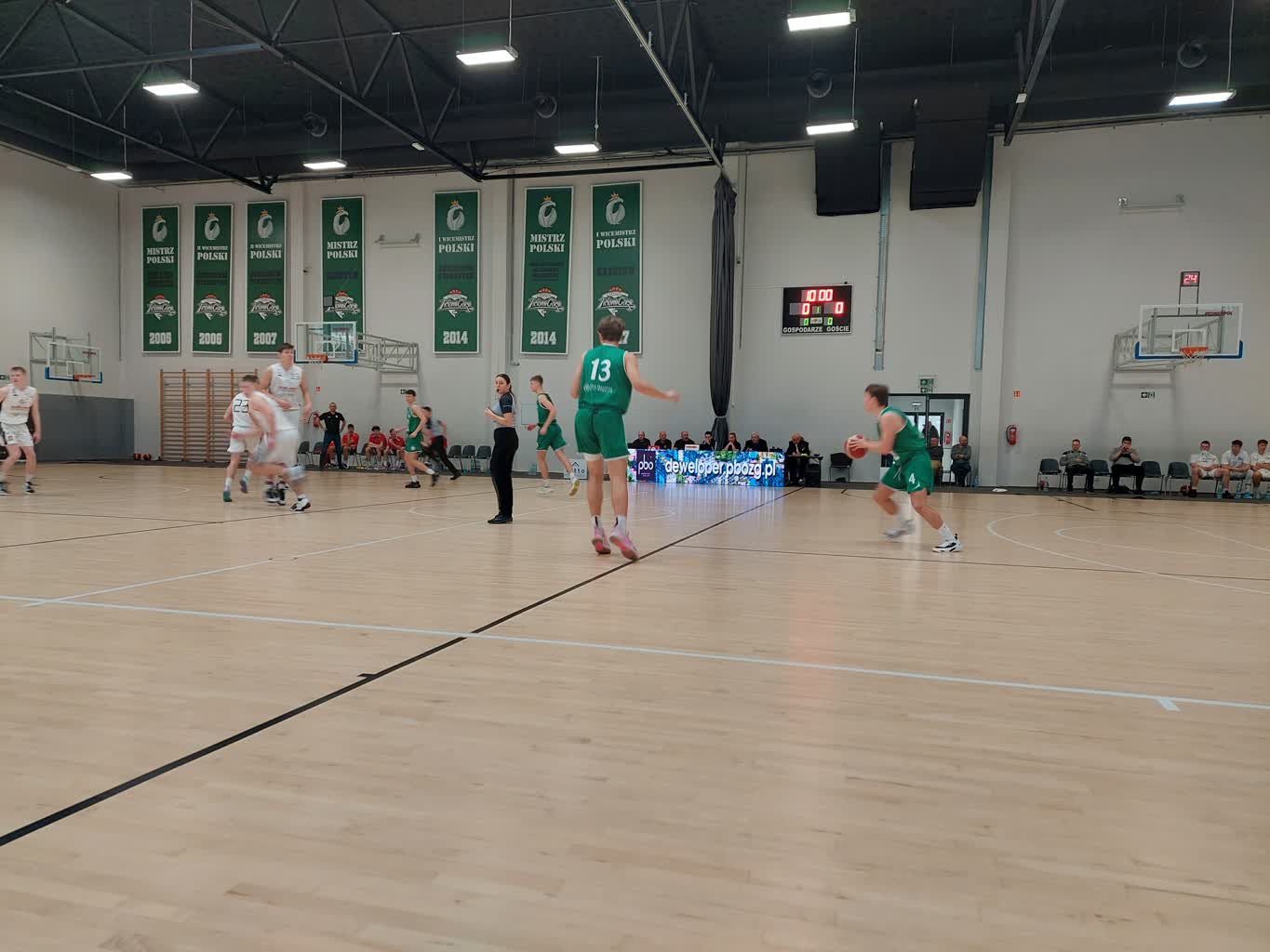Pierwsza kwarta była popisowa w wykonaniu zielonogórzan, którzy po 10 minutach prowadzili 28:17. W drugiej kwarcie wrocławianie wygrali aż 25:12 i do przerwy Śląsk prowadził 42:40.