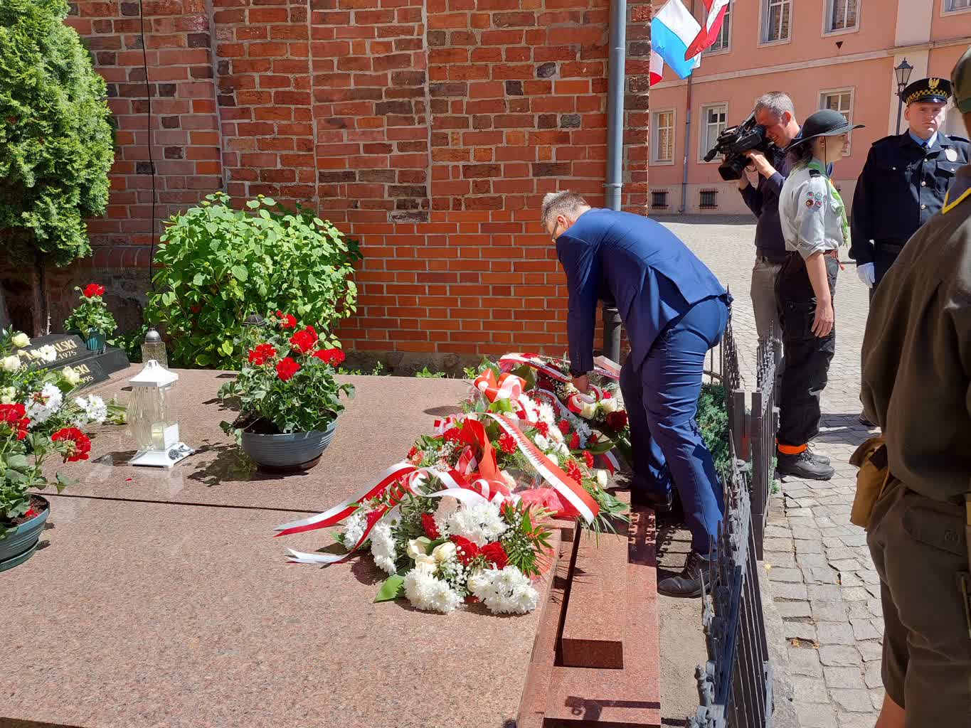 Podczas dzisiejszego apelu złożono kwiaty przy pomniku Obrońców Domu Katolickiego i na grobie ks. Kazimierza Michalskiego.