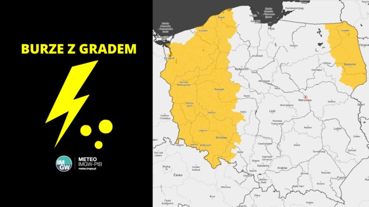 Instytut Meteorologii i Gospodarki Wodnej wydał ostrzeżenie pierwszego stopnia przed burzami z gradem, które w piątek mogą występować w całym województwie lubuskim.