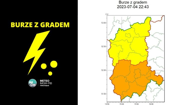 Ostrzeżenie o możliwości wystąpienia burz z gradem wydano dla województwa lubuskiego.