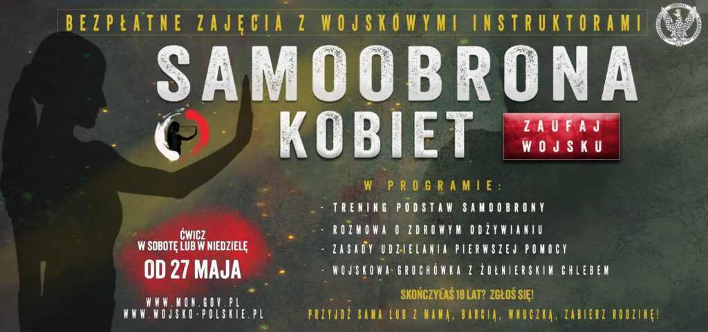 W najbliższy weekend w Parku Książęcym w Zatoniu odbędzie się szkolenie z samoobrony dla kobiet.To inicjatywa Ministerstwa Obrony Narodowej wraz z Centralnego Wojskowego Centrum Rekrutacji i Dowództwa Generalnego Rodzajów Sił Zbrojnych. Oba szkolenia odbędą się z doświadczonymi żołnierzami – instruktorami.