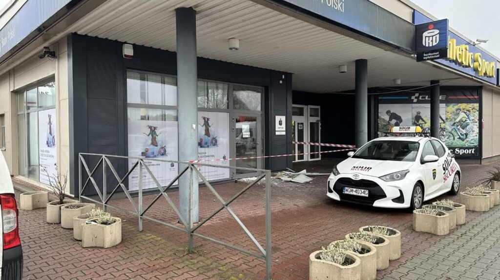 Eksplozja rozerwała bankomat na kawałki oraz wybiła szyby z pomieszczenia, w którym był zainstalowany. Policja na razie nie informuje czy złodziejom udało się ukraść kasetkę z gotówką.