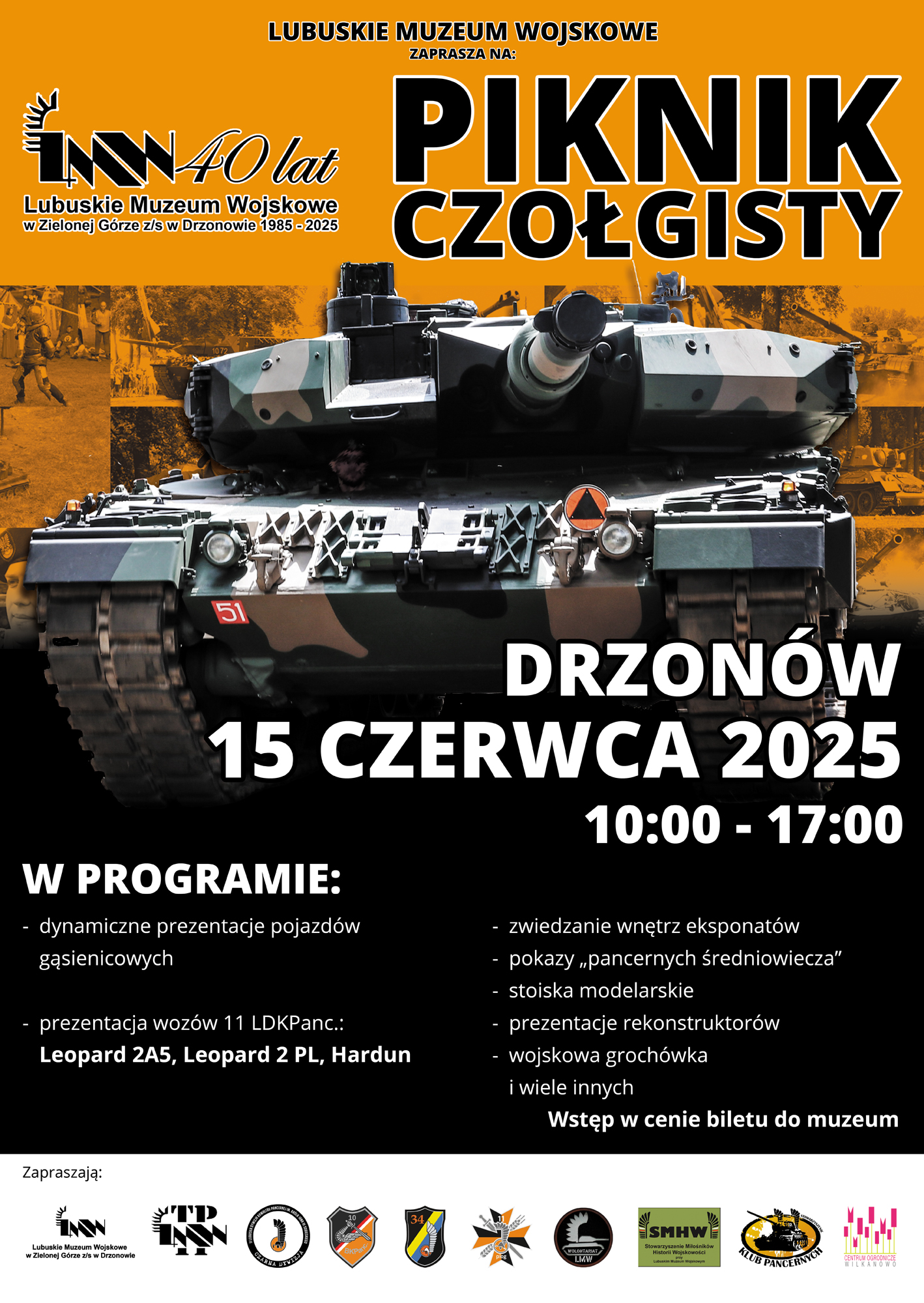 W planach sztandarowyj imprezy w muzeum jaką jest Piknik Czołgisty, sporo atrakcji dla uczestników wydarzenia, w tym dynamiczne prezentacje pojazdów gąsienicowych i prezentacja wozów 11. Dywizji Kawalerii Pancernej:
