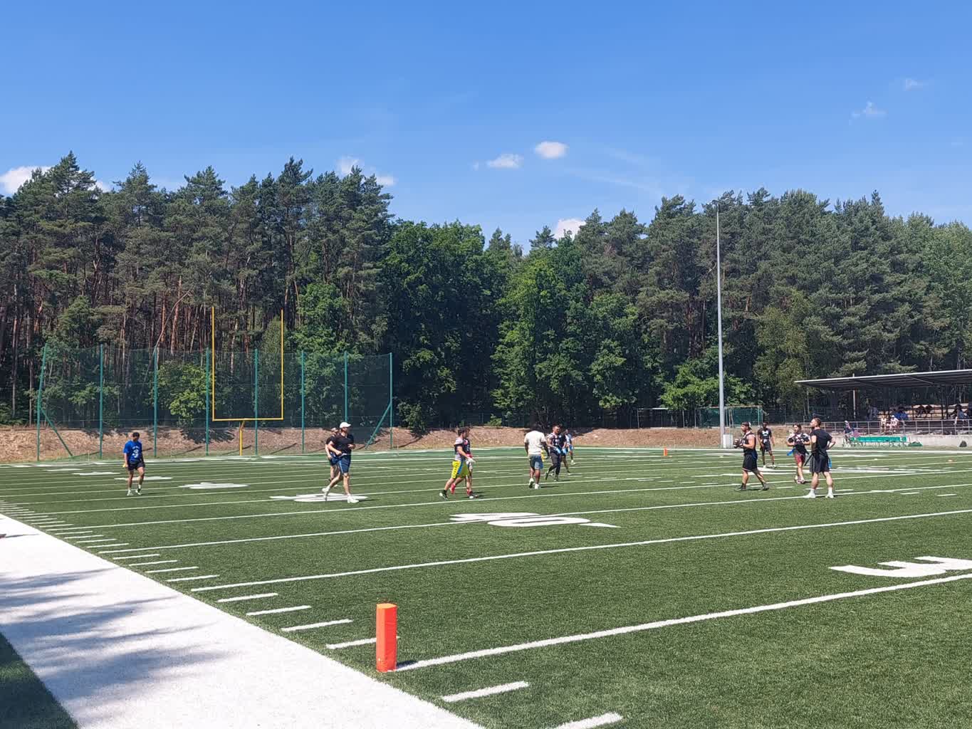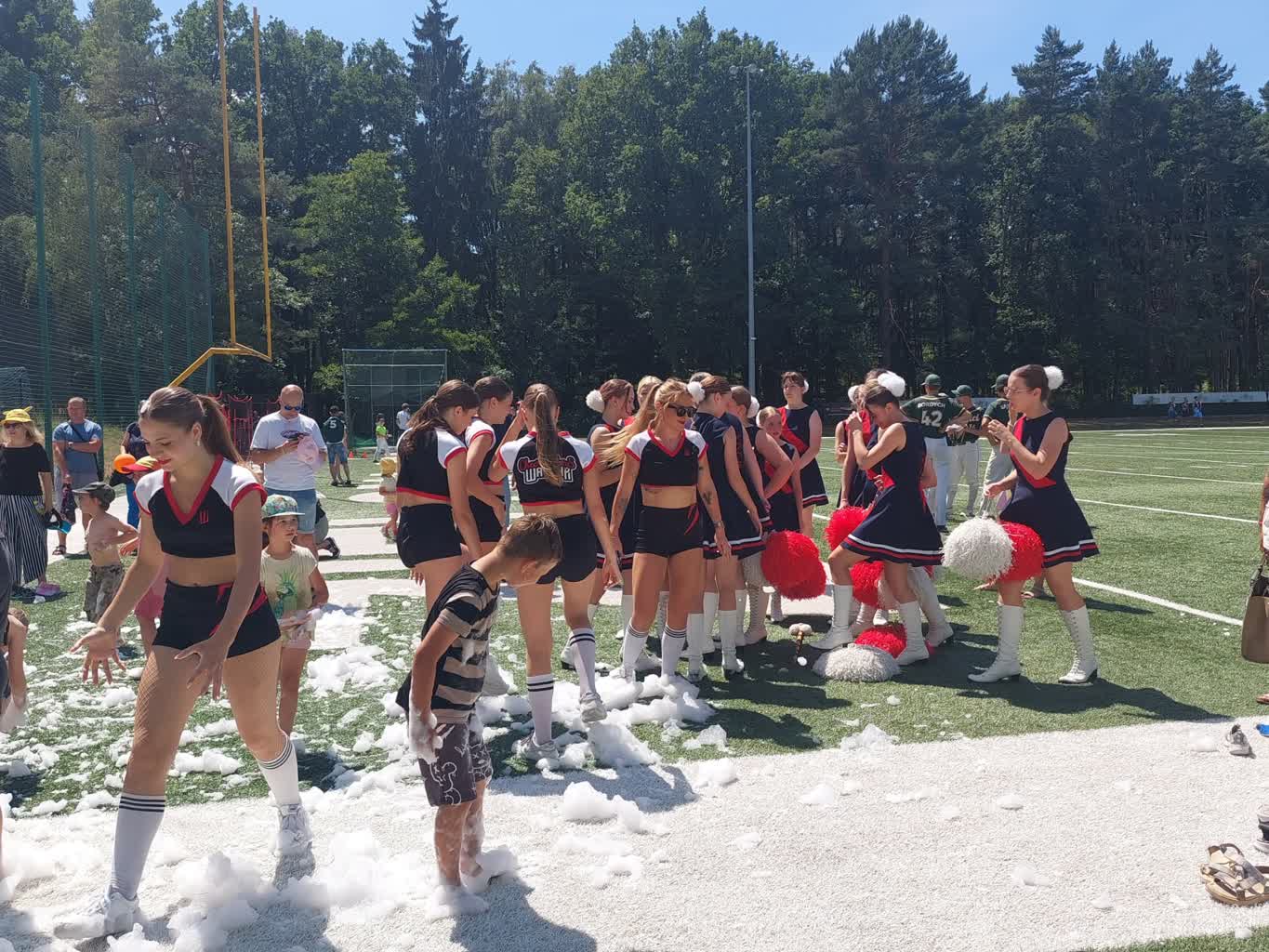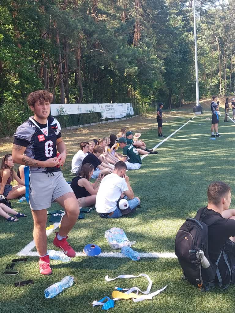 Na boisku prezentowano również tzw. futbol flagowy, czyli dyscyplinę sportową skierowaną głównie do młodzieży, która w przyszłości chce grać w futbol amerykański. Zasady gry wytłumaczył Sebastian Domański, prezes klubu Wataha Zielona Góra: