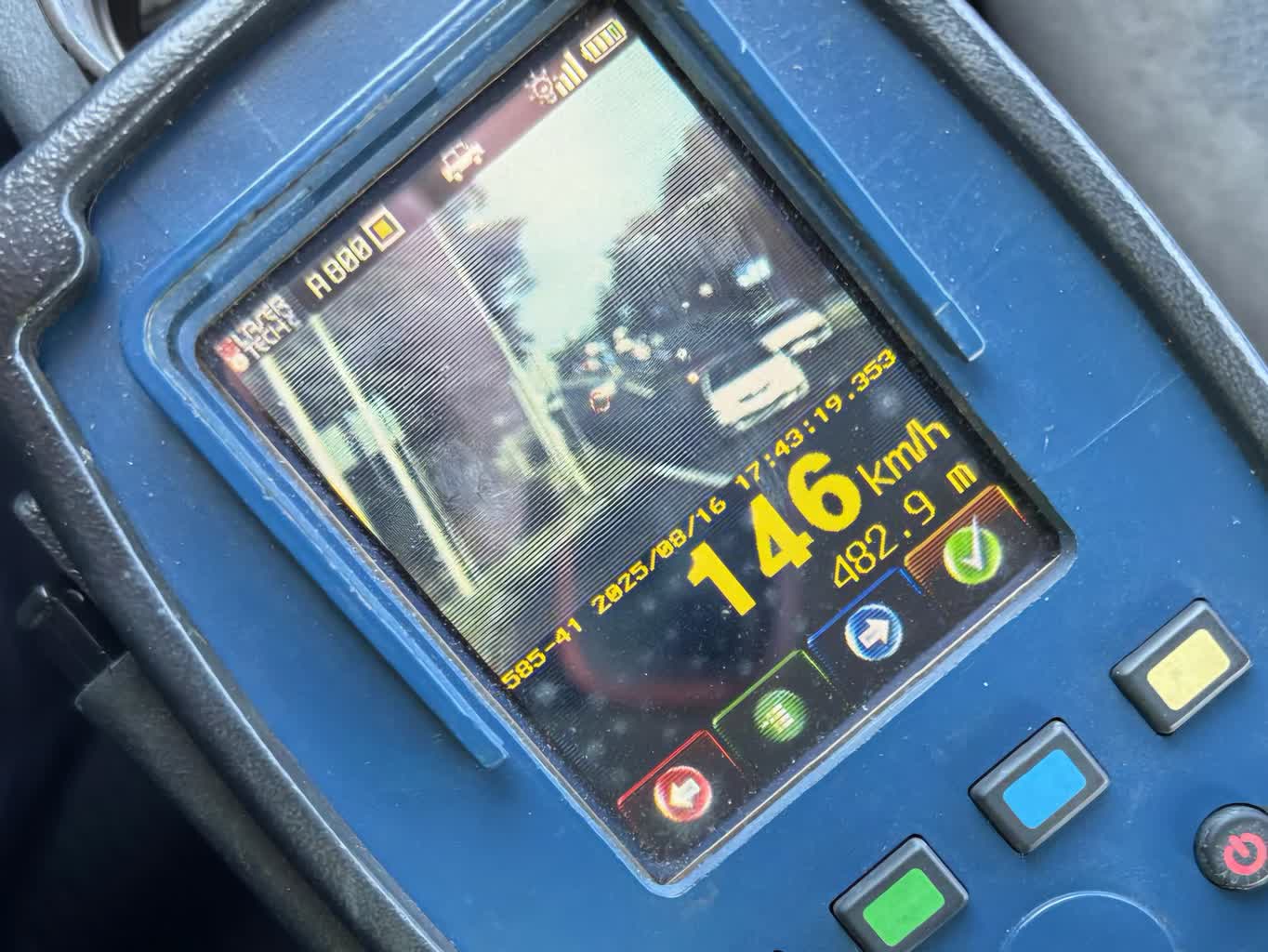 Mundurowi zatrzymali mężczyźnie prawo jazdy. Dodatkowo pirat drogowy dostał 2500 złotych mandatu i 15 punktów karnych za prędkość oraz dodatkowo 100 złotych i 3 punkty za pojazd niedopuszczony do ruchu.