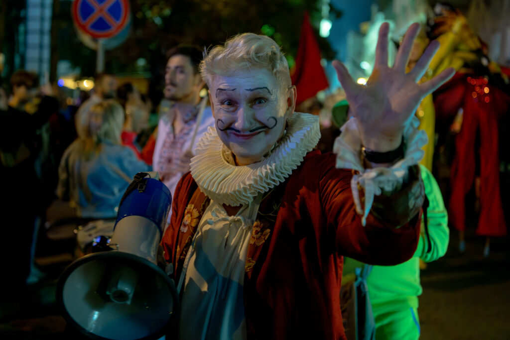 Zabawa tradycyjnie rozpoczęła się od przejazdu małego korowodu, który wystartował spod Lubuskiego Teatru. Artyści udali się w kierunku głównej sceny na Placu Powstańców Wielkopolskich.