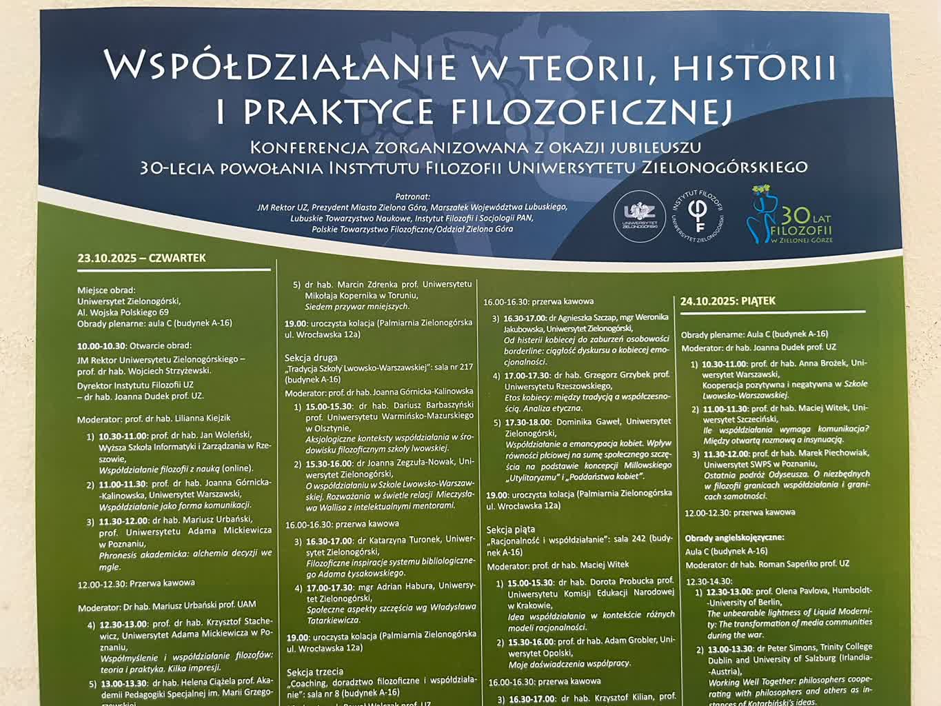 30-lecie istnienia obchodzi dzisiaj Instytut Filozofii Uniwersytetu Zielonogórskiego. Z tej okazji na naszej uczelni odbywa się dwudniowa konferencja zatytułowana „Współdziałanie w teorii, historii i praktyce filozoficznej”. Uczestniczą w niej naukowcy i filozofowie z całej Polski oraz studenci.