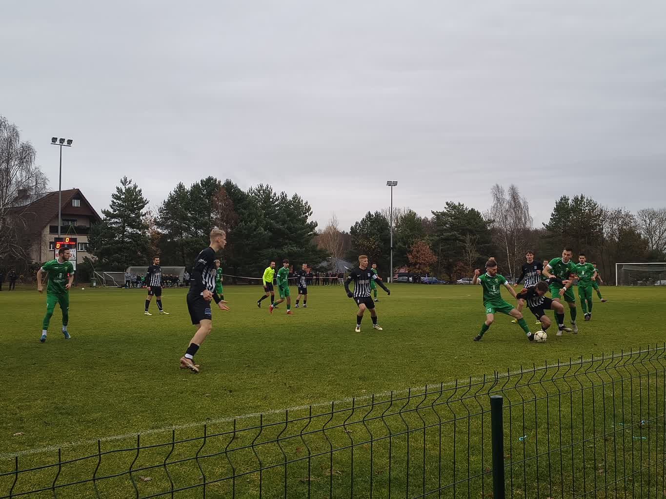 W starciu trzeciej z drugą ekipą rozgrywek do przerwy był bezbramkowy remis, chociaż oba zespoły miały swoje sytuację. Tuż po zmianie stron Promień mógł otworzyć wynik spotkania, ale strzał jednego z żarskich piłkarzy obronił Wojciech Fabisiak, a potem również dobitka nie była udana. Po chwili to miejscowi wyszli na prowadzenie za sprawą niespodziewanego strzału z lewej strony boiska autorstwa Eryka Grzeszyńskiego. Miało to miejsce w 47 min, piłka odbiła się od słupka i wpadła do bramki. Promień atakował i w 81 min do wyrównania doprowadził Bartłomiej Pruchniak. Żaranie mieli jeszcze okazję w doliczonym czasie drugiej połowy, ale więcej goli tego dnia już nie padło.