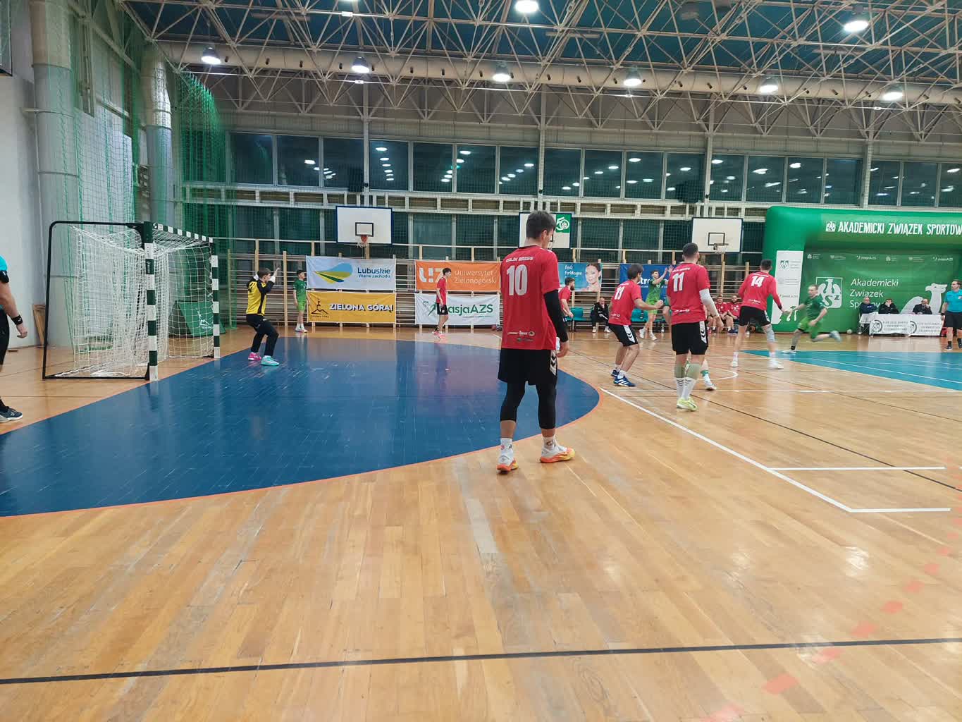 Pierwsza połowa spotkania była dobra w wykonaniu akademików, którzy prowadzili z outsiderem tabeli 21:13. Po zmianie stron w zespole gospodarzy nastąpiło duże rozluźnienie, nieskuteczne strzały i goście w 42 minucie przegrywali tylko 22:24. Reprymenda trenera Ireneusza Łuczaka dała efekt, bo cztery minuty później AZS UZ prowadził już 27:22 i systematycznie zwiększał przewagę, kończąc mecz z przewagą dziewięciu bramek: