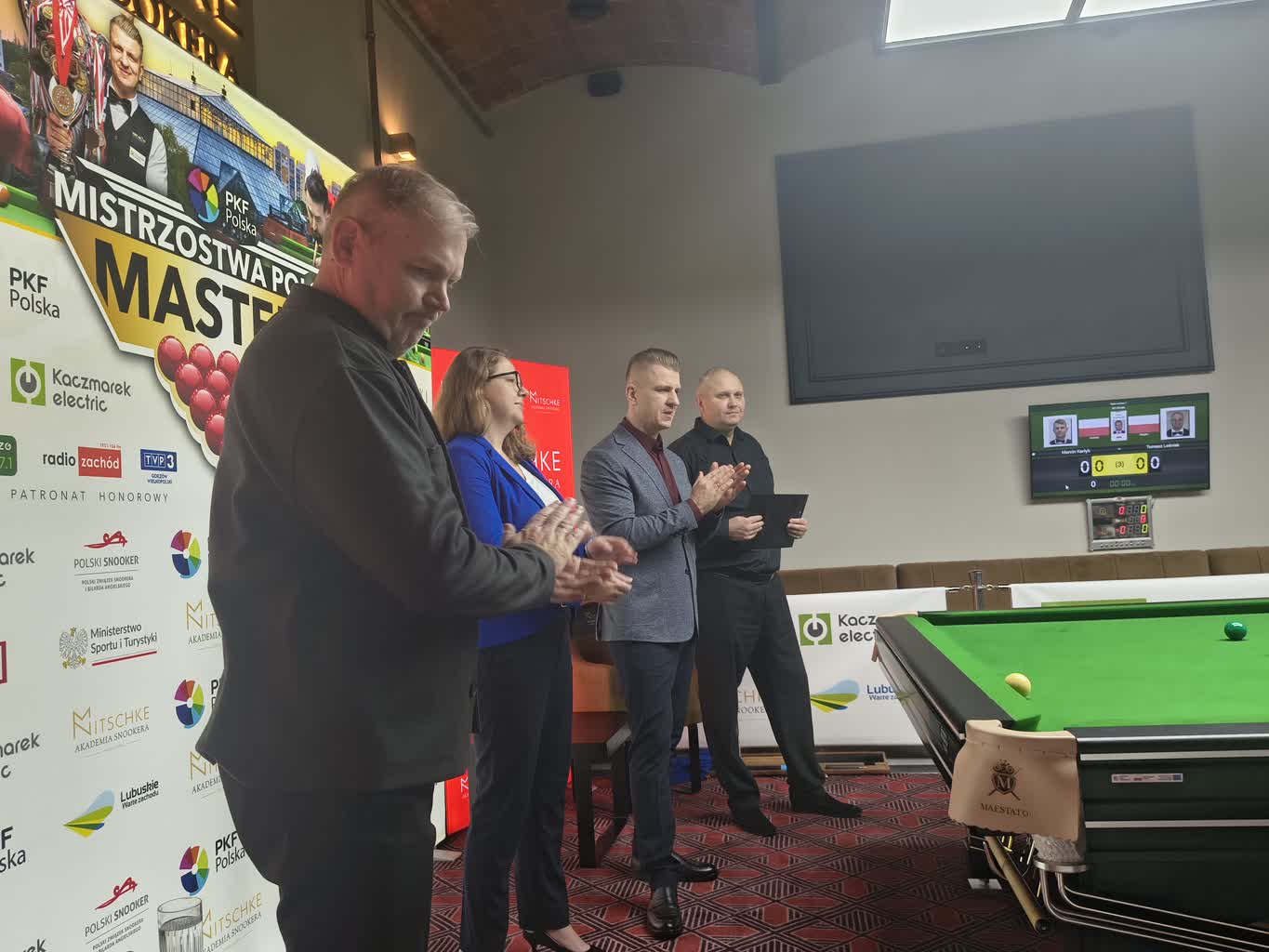 Zawodników powitał wiceprezes Polskiego Związku Snookera i Bilarda Angielskiego, Piotr Murat: