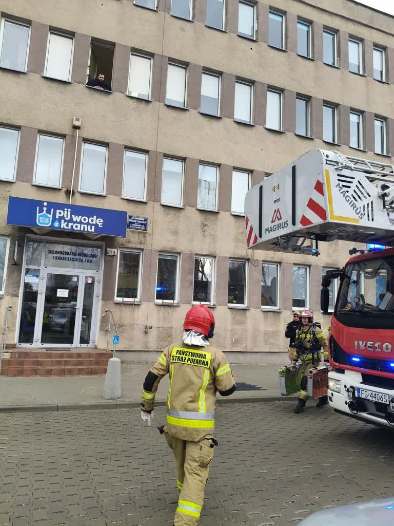 Pożar jednego z pomieszczeń biurowych i ewakuacja wszystkich pracowników – to scenariusz ćwiczeń, które przeprowadzili zielonogórscy strażacy.