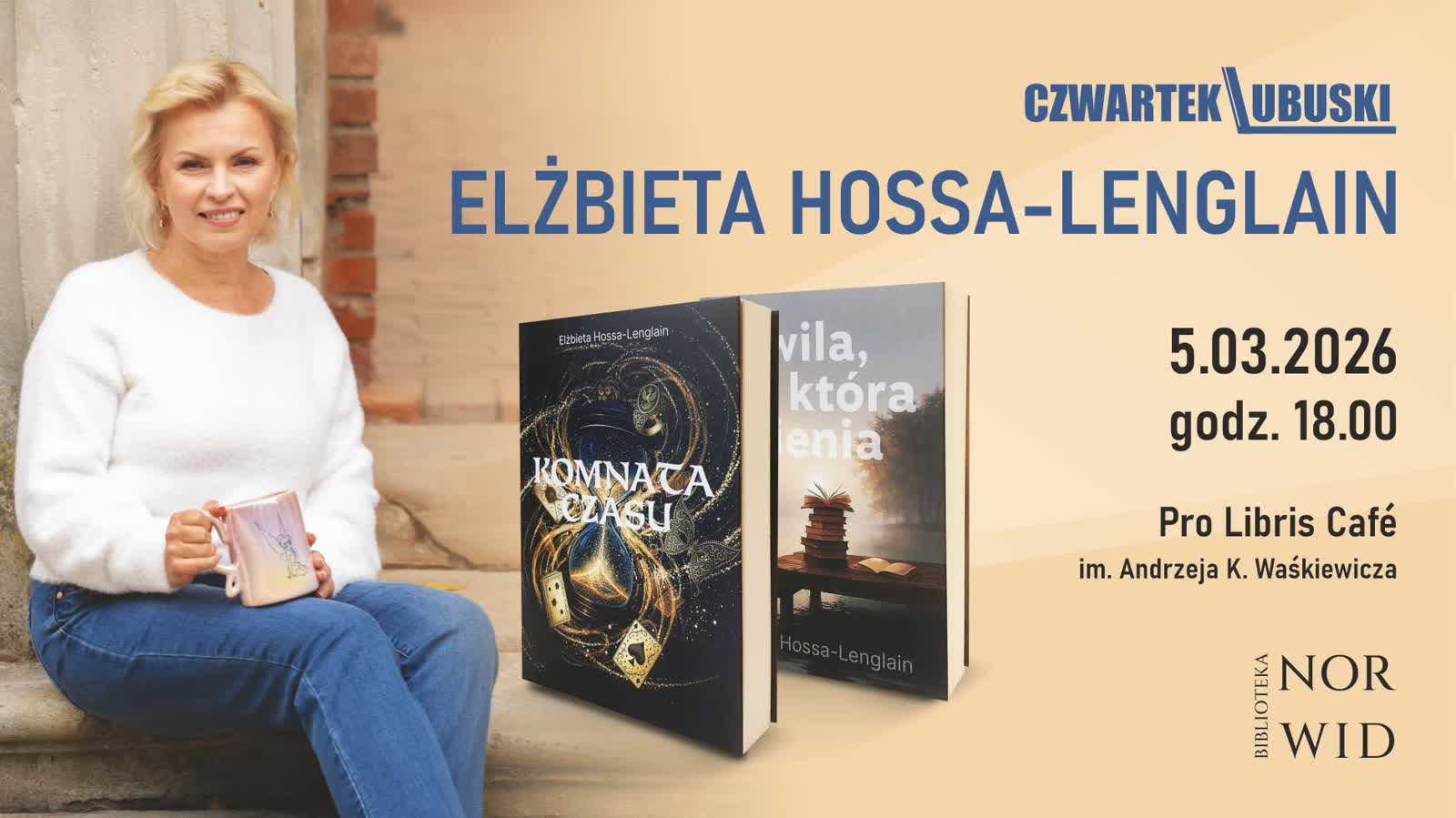 Czwartek Lubuski z Elżbietą Hossą-Lenglain odbędzie się w Pro Libris Café, w gmachu głównym biblioteki Norwida.