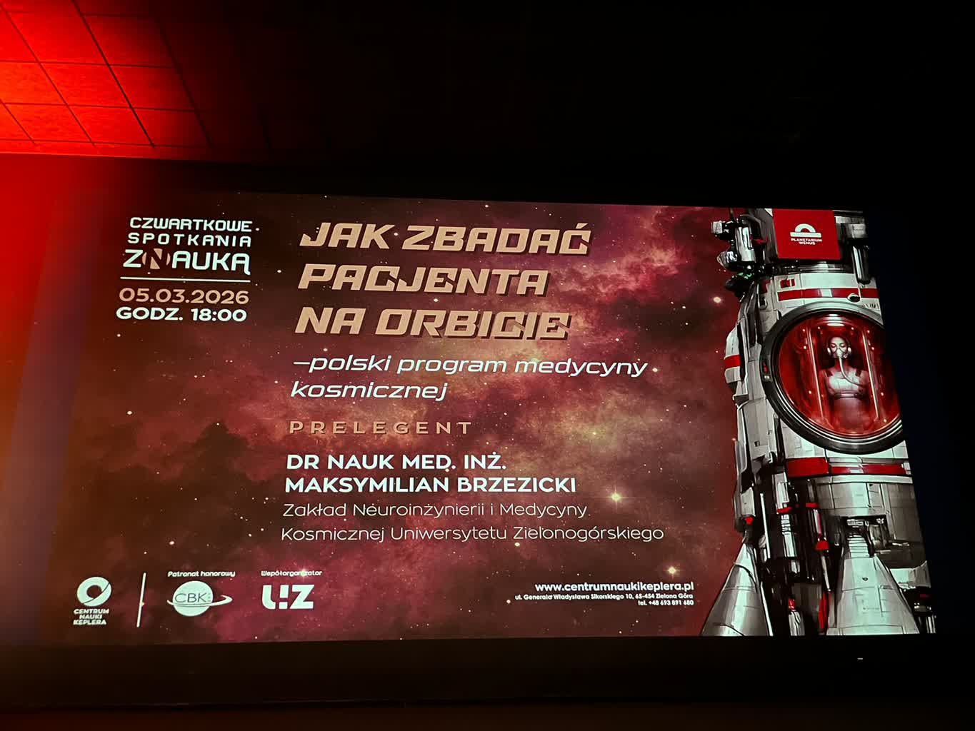 Zielonogórzanie mieli okazję zgłębić swoją wiedzę na temat medycyny kosmicznej. W czwartkowe popołudnie, w Planetarium Wenus, odbył się bowiem wykład poprowadzony przez dra n. med. Maksymiliana Brzezickiego. Naukowiec mówił m.in. o wykorzystaniu sztucznej inteligencji na Międzynarodowej Stacji Kosmicznej.
