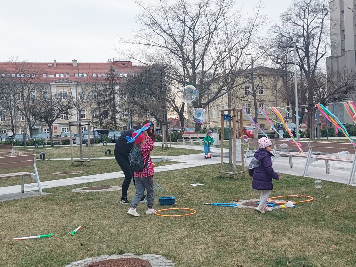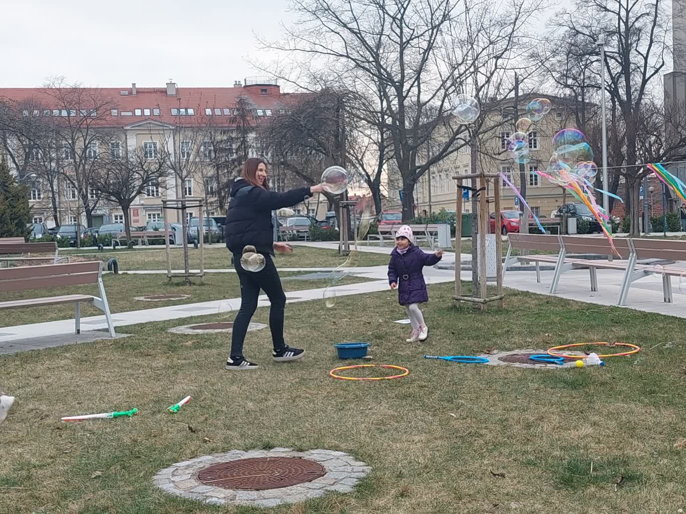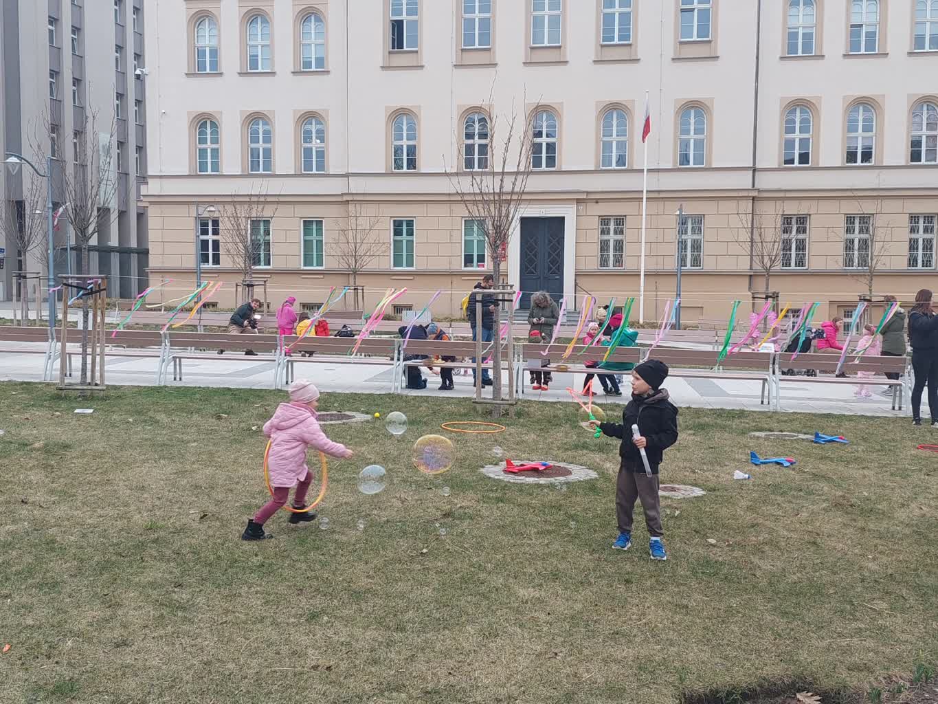 Puszczanie mydlanych baniek, rysowanie kredą czy malowanie wspólnego obrazu – w ten sposób najmłodsi Zielonogórzanie powitali wiosnę. Impreza odbyła się na Placu Słowiańskim.