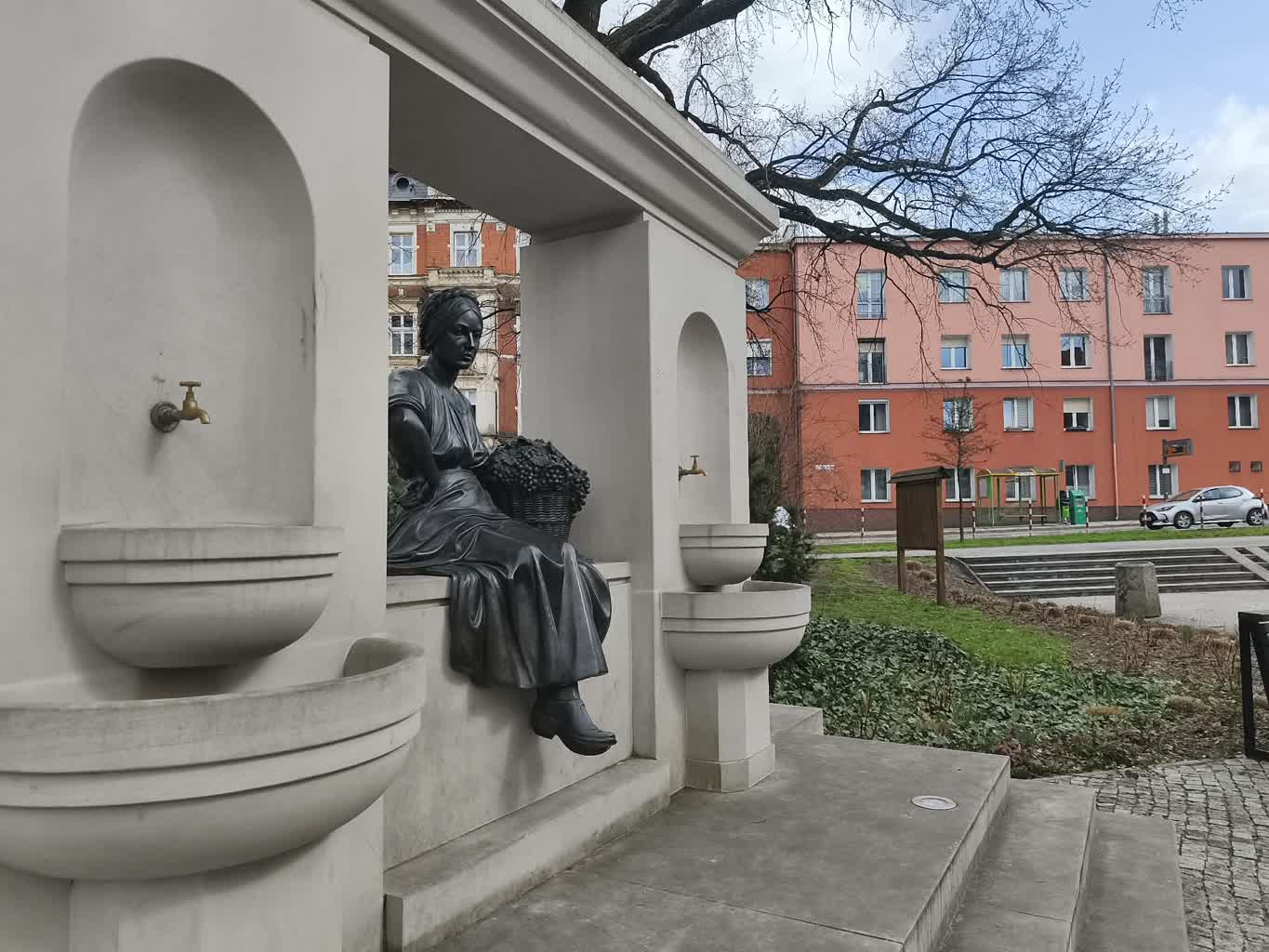 Dziś odwiedzimy jedno z takich miejsc. Położone w samym sercu miasta, nieopodal dworca PKP oraz alei Niepodległości. Winiarka Emma to rekonstrukcja przedwojennego pomnika, który powstał w 1937 roku. Przedstawia winiarkę, która wraca z pracy z koszem pełnym winogron.
