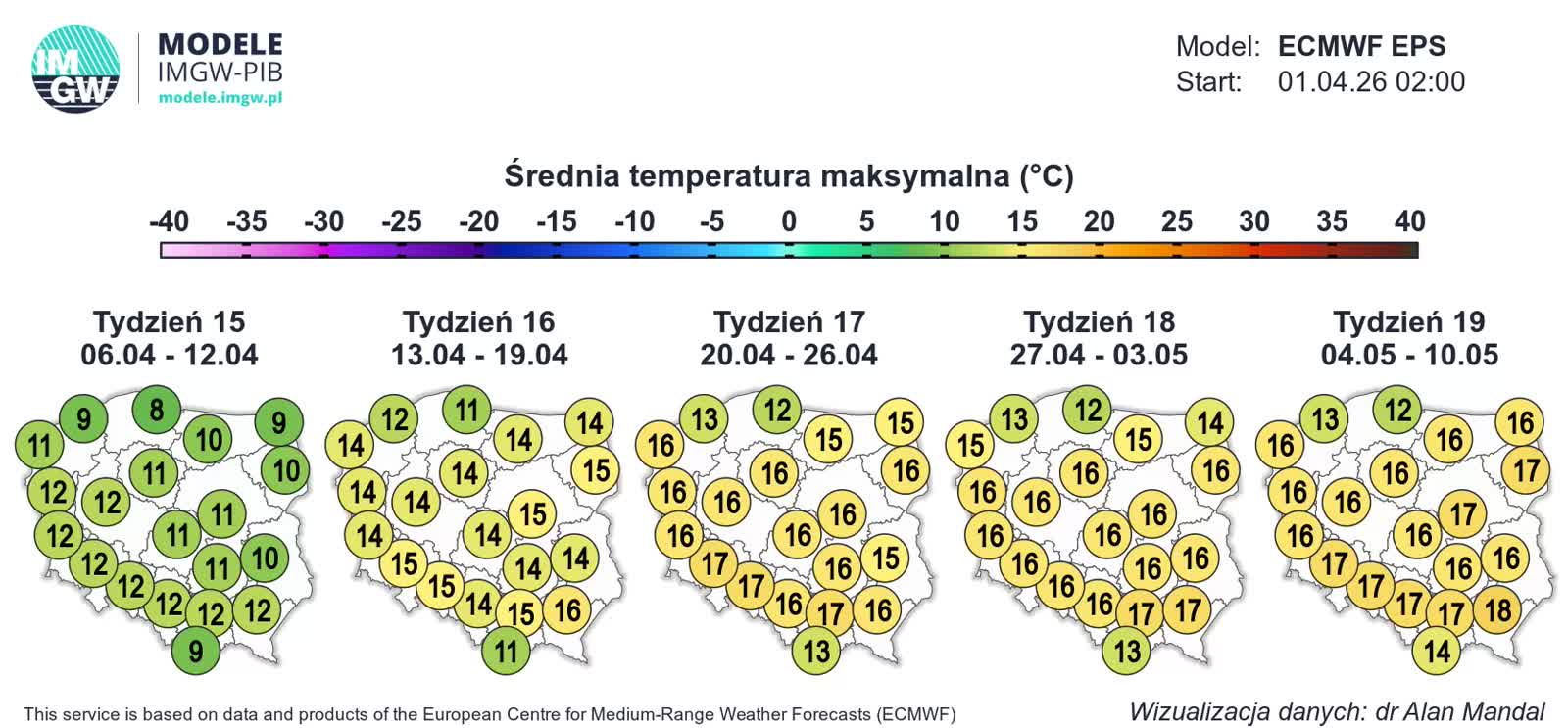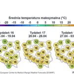 Od czwartku prognozowane jest nadejście układu wyżowego. I do niedzieli, do poniedziałku, temperatury będą rosły do poziomu powyżej 17, a w niektórych rejonach kraju nawet powyżej 20 stopni Celsjusza. Zapowiada się zatem słoneczna pogoda