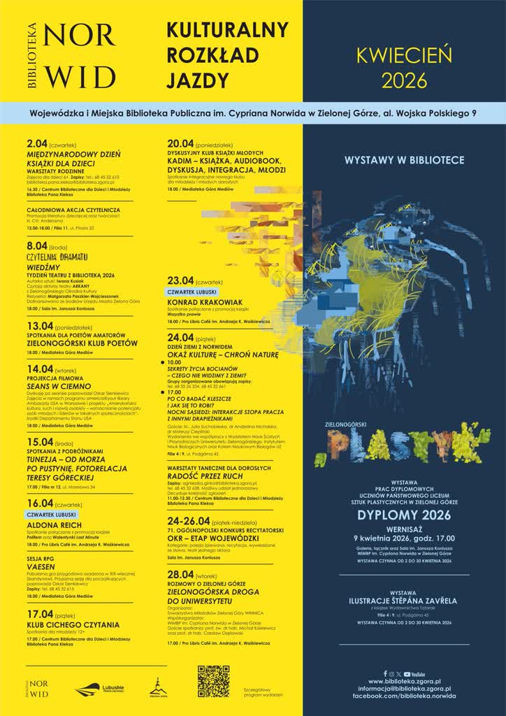 Trwają eliminacje do 71. Ogólnopolskiego Konkursu Recytatorskiego, wydarzenia, które od lat promuje kulturę żywego słowa oraz sztukę interpretacji literatury. O konkursie mówią Marzena Wańtuch-Elińska oraz Anna Urbańska z Wojewódzkiej i Miejskiej Biblioteki Publicznej im. C. Norwida w Zielonej Górze :
