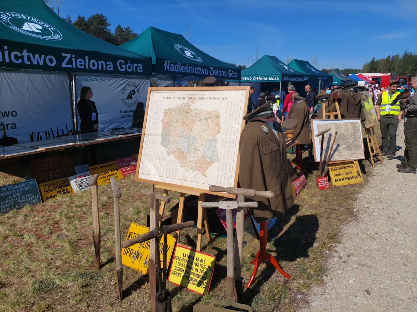 Podczas akcji utworzono również kilka stanowisk, przy których można porozmawiać m.in. z przedstawicielami nadleśnictwa, wojska oraz straży pożarnej. Jedną z przygotowanych atrakcji jest wystawa zabytkowych mundurów i narzędzi związanych ze strażą leśną. O szczegółach Bartosz Morawski z Nadleśnictwa Zielona Góra: