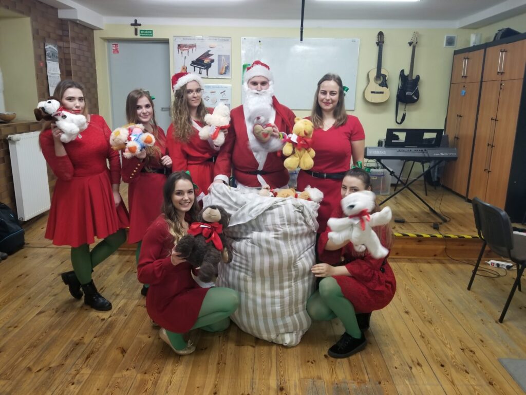 Mikołajowi towarzyszyły elfy, w rolę których wcieliły się studentki UZ. Najpierw były występy wokalne, a następnie mikołaj rozdawał niespodzianki: