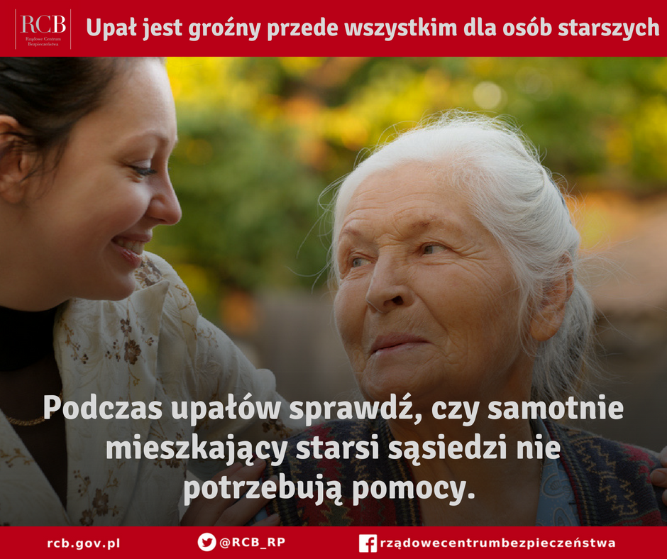 Rządowe Centrum Bezpieczeństwa na swoim twitterowym profilu opublikowało także grafikę, w której specjaliści radzą jak przetrwać upały. Szczególną uwagę powinniśmy zwracać w tych dniach na dzieci oraz na samotne osoby starsze w naszych rodzinach i sąsiedztwie.